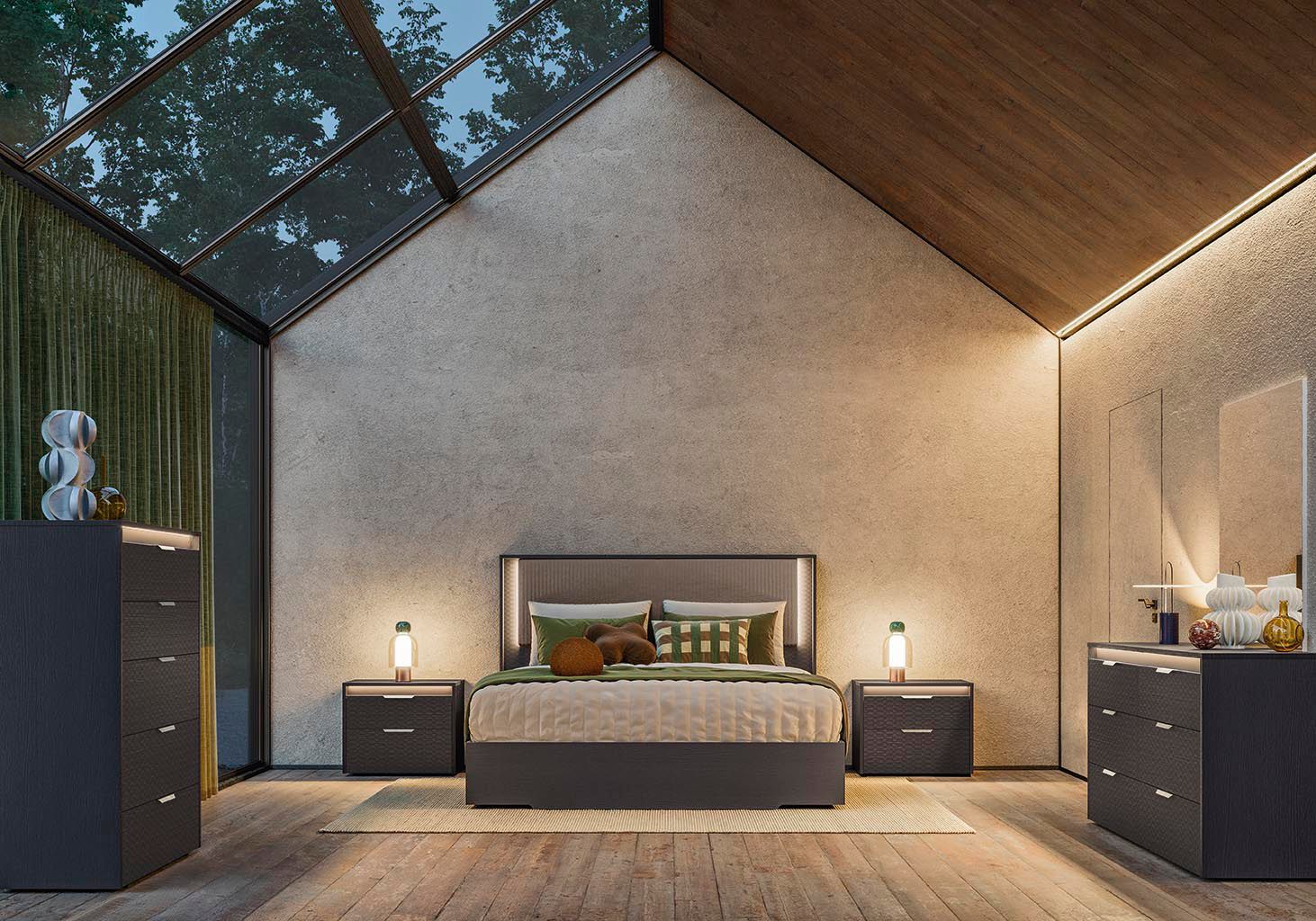 Graphite - это предложение для ночной зоны, характеризующейся отделкой Graphite high gloss, беспрецедентной текстурой в глянцевой отделке