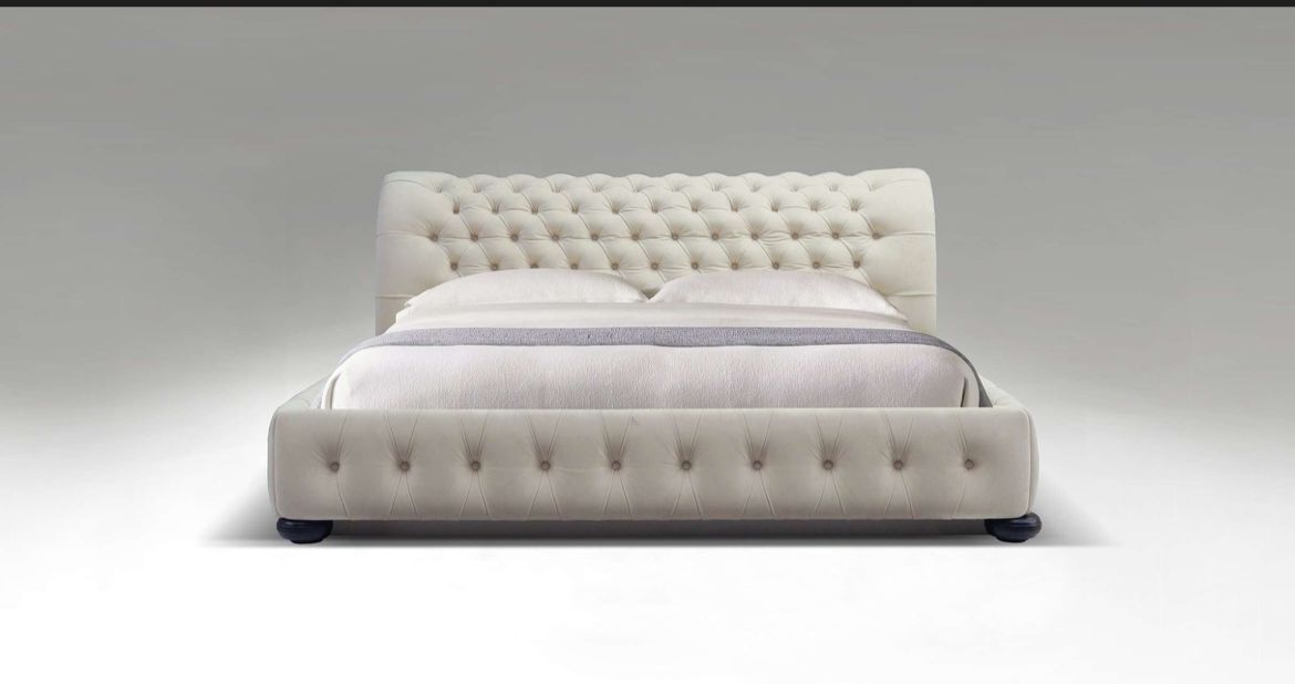 Кровать, предлагаемая в размерах Queen size, King size, California size, 180 size и UK size, характеризуется особым асимметричным разделением панели головной спинки с помощью тонких металлических профилей.